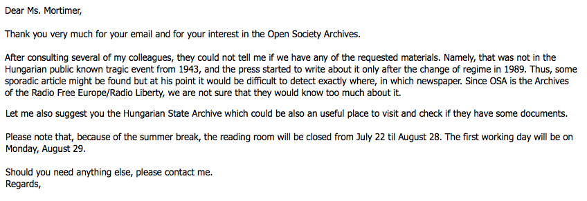 I write to the Open Society Archive in Budapest, but they have no records either.