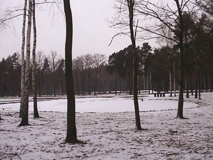After I had filmed the choreography of trees in the cemetery at Zabno and was packing my camera away, a woman approached me. I’d seen her hovering around during the Roma ceremony earlier, but she hung back, not participating. Now it was quiet and I was the only one there, she came and nervously stood by me. Magda translated – the woman knows the location of another mass grave, one she has never told anyone about. She can show it to us.