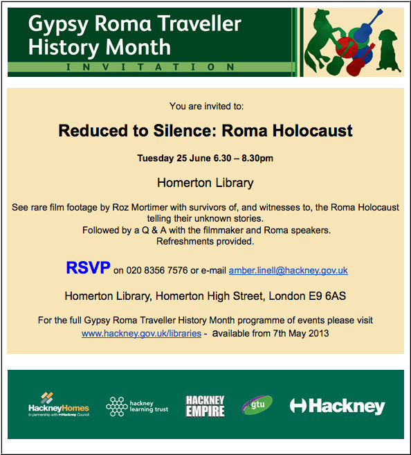 In memory of the thousands of Roma who were murdered during WWII and the many more who continue to be subjected to violent and murderous prejudice in Europe today.